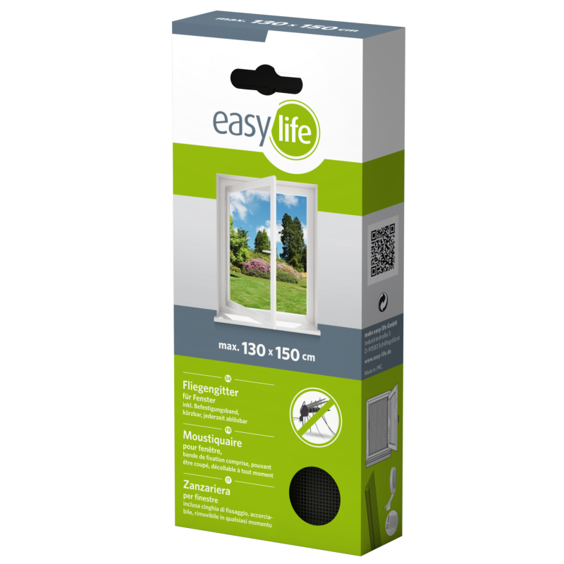Fly netting - safe and harmless protection against troublesome insects such as flies, wasps, mosquitoes, spiders, moths, etc. The net ensures fresh air and undisturbed sleep at all times. The window net is very strong and weatherproof. It can be easily and without problems put on and taken off again at any time, e.g. when over-washing (30°C) or in winter.